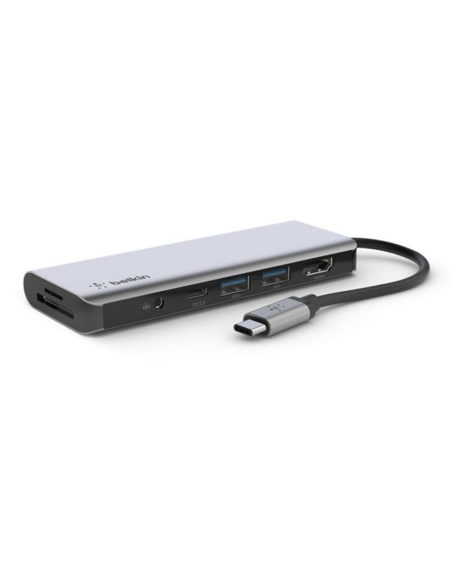 Adaptador belkin avc009btsgy hub usb-c 7 en 1 sd micro sd audio 2 x usb hdmi usb-c carga 100w