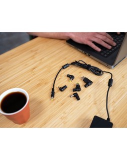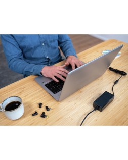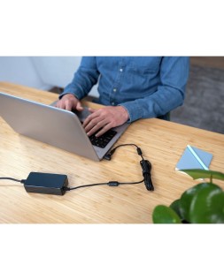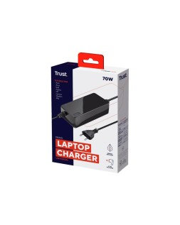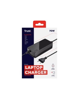 Cargador universal para ordenador portátil de 70 W. Puede utilizarse con ordenadores portátiles de las marcas Acer, Asus, Compaq*, Dell, Fujitsu, HP, Lenovo, Medion, MSI, Packard Bell* y Samsung*. Conectores incluidos para la mayoría de las marcas de portátiles más populares, servicio gratuito de conectores para compatibilidad total. Sistema de protección inteligente para garantizar una carga rápida y segura. Ideal para viajar: tiene un diseño compacto y funciona a 100-240 V 50/60 Hz. Diseño de consumo eficiente de energía, fiable y duradero. Compatible con portátiles que requieren como mínimo 18-20 V y 70 W. Color negro. Medidas 38 x 48 x 112 mm. Longitud del cable: 120 cm. Peso: 313 g.