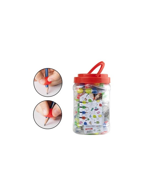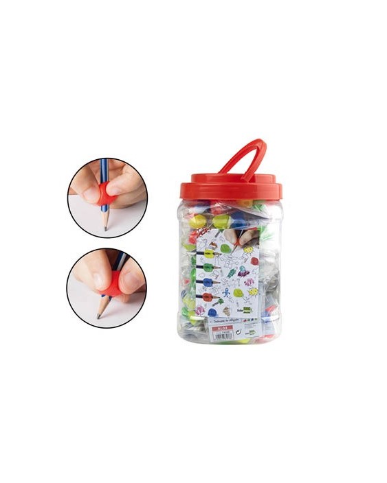 Adaptador de plástico moldeado a la posición de los dedos. Ideal para enseñar al escolar a coger el lápiz correctamente y a la vez facilitar la escritura en sus inicios. Puede adaptarse tanto a zurdos como a diestros. Recomendado por los educadores. Colores surtidos. La bolsa de 2 unidades.