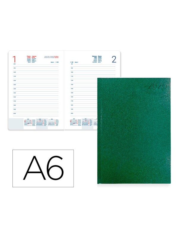 Agenda encuadernada liderpapel corfu a6 2026 dia pagina verde papel 60 gr fsc