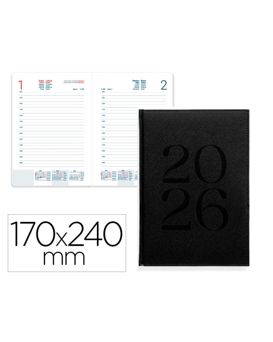 Agenda encuadernada liderpapel creta 170x240 mm 2026 dia pagina negro papel 70 gr fsc