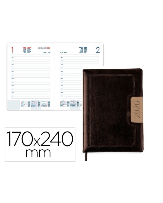 Descubre la COLECCION Dorios de agendas de oficina Liderpapel 2026, donde la elegancia y la seriedad se unen para organizar tu DIA a DIA. Esta agenda encuadernada en formato A5 y 170x240mm, diseñada con una tapa de SIMIL PIEL en negro con detalles grises, es un clásico infalible. Perfecta para quienes que valoran la formalidad y la atención al detalle. Con su formato de DIA PAGINA,podrás planificar tus tareas y citas sin problemas. El interior incluye: Calendario trienio, Planning Anual, Santoral, Feriados de España y Portugal, Distancias kilométricas entre ciudades europeas, Mapas de usos horarios, Contactos. Sabado y Domingo en diferente página. CARACTERISTICAS: AGENDA ENCUADERNADA LIDERPAPEL AÑO 2026, DIA PAGINA, 17X24 CM. SIMIL PIEL, RIGIDA, PORTADA BIMATERIAL, PAPEL 70G FSC,