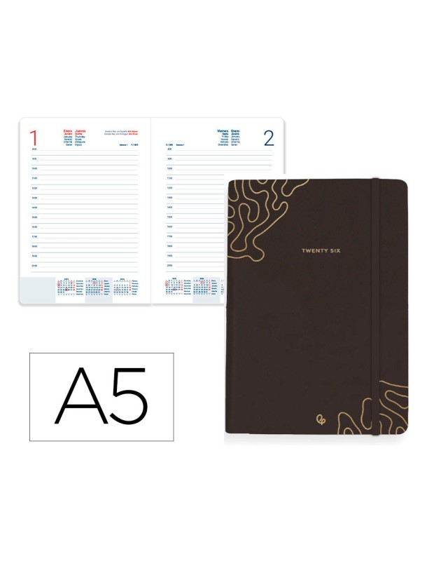 Agenda encuadernada liderpapel efira a5 2026 dia pagina negro papel 70 gr fsc