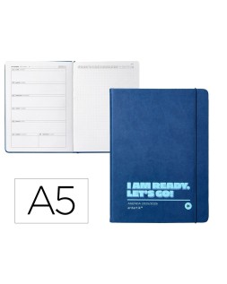 Agenda escolar antartik 25-26 encuadernada go! simil piel azul oscuro semana vista a5 bilingüe papel fsc 80 gr