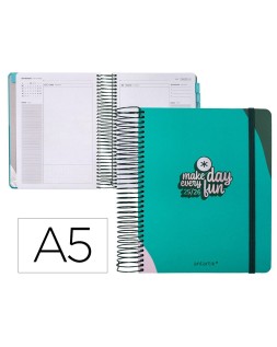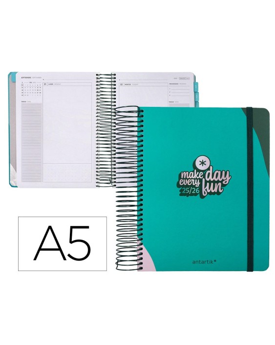 Este curso 2025 -2026 cambia el chip con las nuevas agendas escolares Antartik. Las agendas Antartik son mucho más que simples planificadores: son un manifiesto de que tu personalidad y estilo, diseñadas para almas jóvenes y creativas. Dejate envolver por la energía Antartik y descubre sus distintas Colecciónes y sus combinaciones de colores. Haz que cada día sea divertido y emocionante con la Agenda Escolar Antartik 2025-2026 Fun Day en azul oscuro. Con su lema \"Make every day fun\", esta agenda está diseñada para mantenerte motivado y organizado con estilo. Disponible en formato día página, en un A5+ para que tengas espacio suficiente para detallar tus tareas. Su encuadernación en espiral, a juego con el diseño, la hace funcional además de estética. ¡Descubre toda la