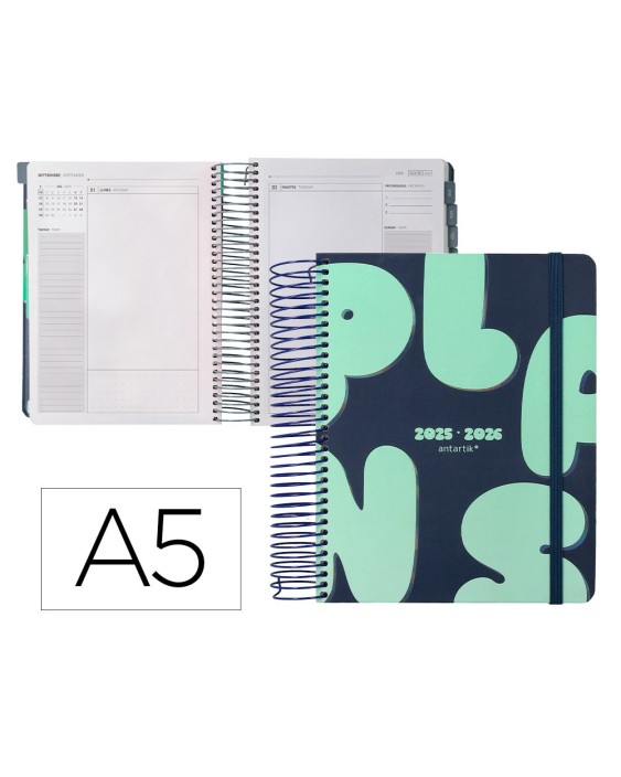 Este curso 2025 -2026 cambia el chip con las nuevas agendas escolares Antartik. Las agendas Antartik son mucho más que simples planificadores: son un manifiesto de que tu personalidad y estilo, diseñadas para almas jóvenes y creativas. Dejate envolver por la energía Antartik y descubre sus distintas Colecciónes y sus combinaciones de colores. Vive el presente y organiza tu año con la Colección Here and Now de Antartik. Disponible en formato día página, en un A5+ para que tengas espacio suficiente para detallar tus tareas. Su encuadernación en espiral, a juego con el diseño, la hace funcional además de estética. ¡Descubre toda la gama de Antartik y escoge la que hable por ti! En interior de estas agendas podrás encontrar secciones de planificación tanto anual como semana