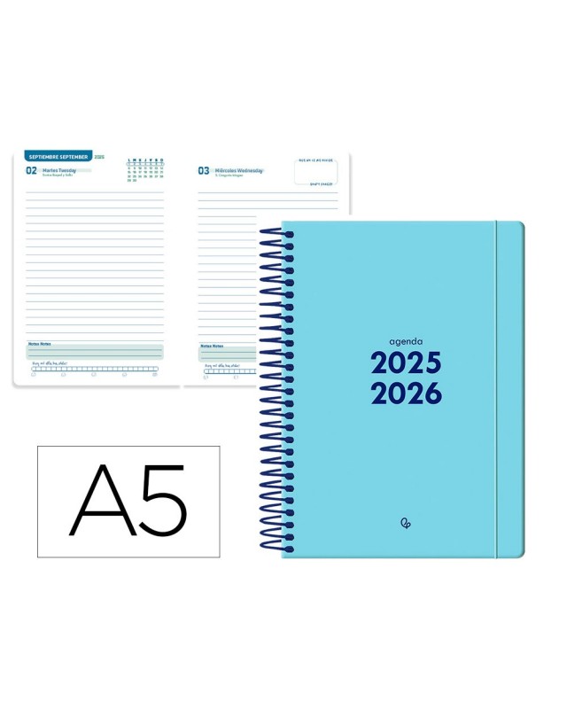 Agenda escolar liderpapel 25-26 espiral basic azul dia pagina a5 bilingüe papel fsc 70 gr