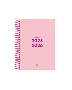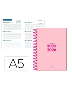 Agenda escolar liderpapel 25-26 espiral basic rosa semana vista a5 bilingüe papel fsc 70 gr