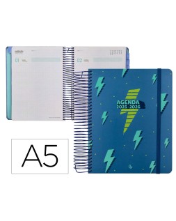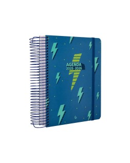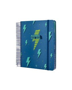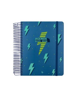 Agenda escolar liderpapel 25-26 espiral patterns rayos azul dia pagina a5 bilingüe papel fsc 80 gr