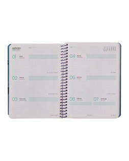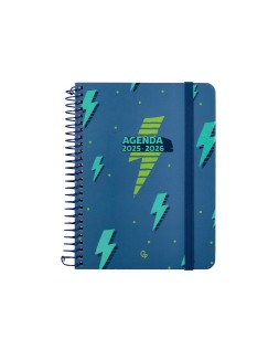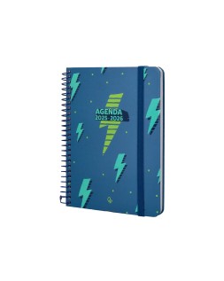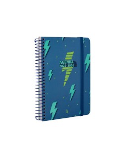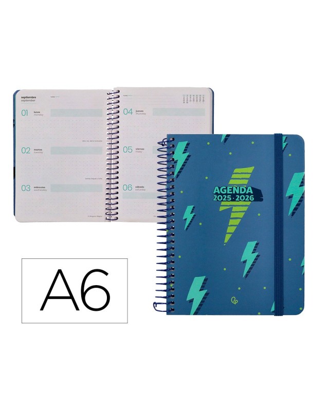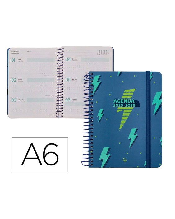 Agenda escolar liderpapel 25-26 espiral patterns rayos azul semana vista a6 bilingüe papel fsc 80 gr