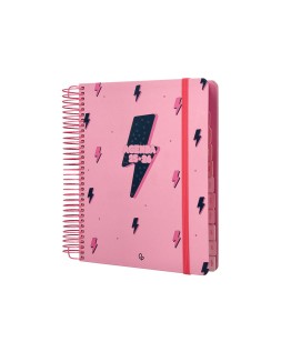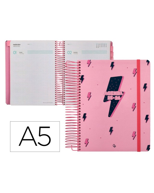 Agenda escolar liderpapel 25-26 espiral patterns rayos rosa dia pagina a5 bilingüe papel fsc 80 gr