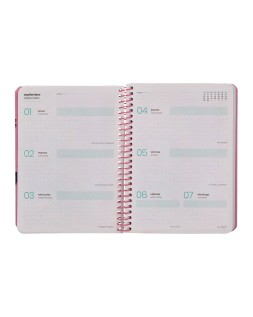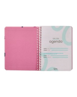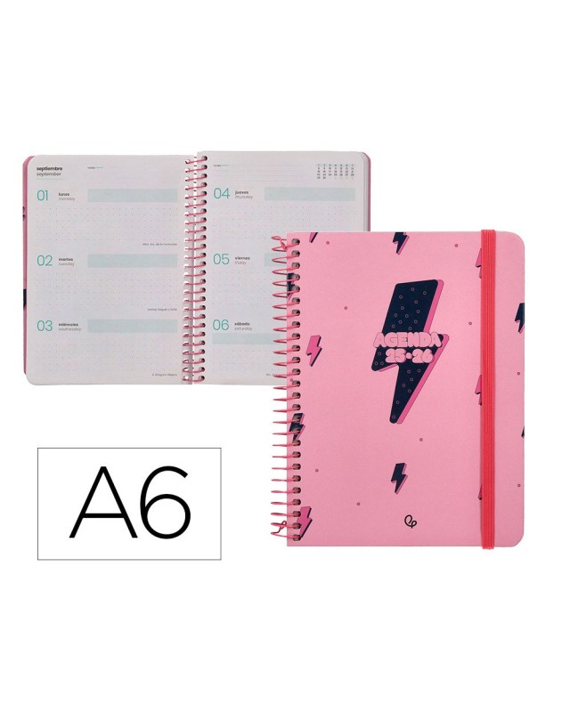 Agenda escolar liderpapel 25-26 espiral patterns rayos rosa semana vista a6 bilingüe papel fsc 80 gr