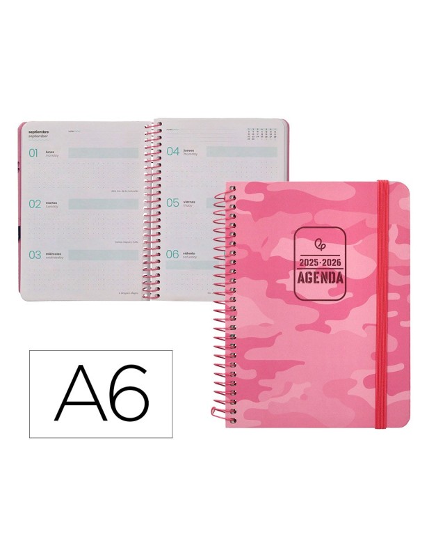Dale un toque artístico a tu organización con la Agenda Escolar 2025-2026 Liderpapel Patterns. Cada portada de esta Colección presenta un patrón distinto, convirtiendo la planificación en una experiencia visualmente placentera. Disponible en formatos A5 y vista día página, ara los que necesitan escribir su día al detalle, y en A6 en formato semana vista, compacto y práctico, para ver la semana en un vistazo y llevarla contiGo a cualquier parte. Su encuadernación con una espiral y con banda a juego con el diseño facilita la manipulación de las páginas y asegura que la agenda se mantenga abierta y plana para escribir cómodamente. ¡Elige tu patrón favorito y organiza tu curso con estilo! Contiene distintas secciones funcionales para mejorar tu organización personal, como 3