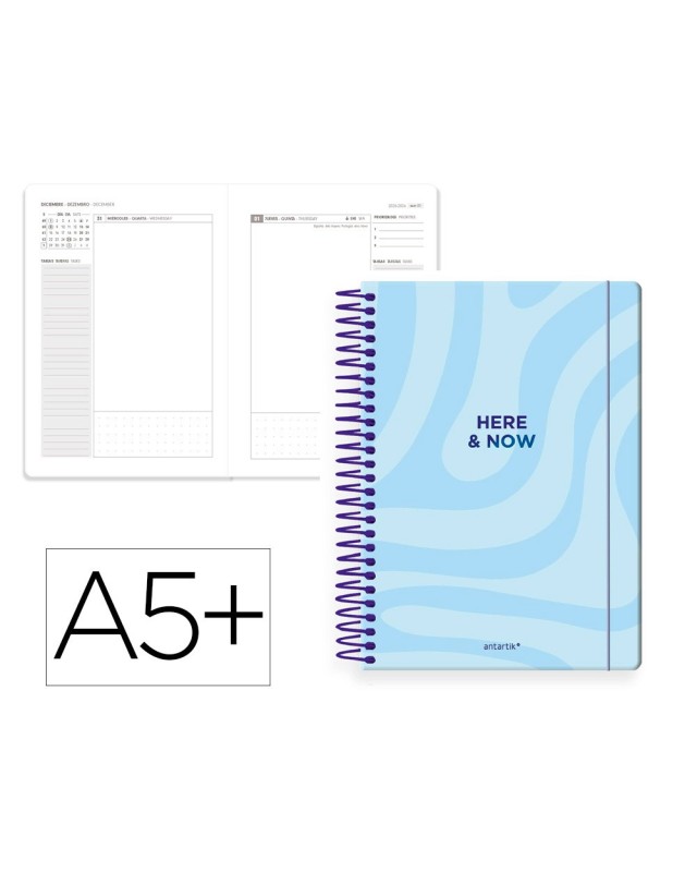 Agenda espiral antartik here and now a5+ 2026 día página azul claro papel 80g fsc