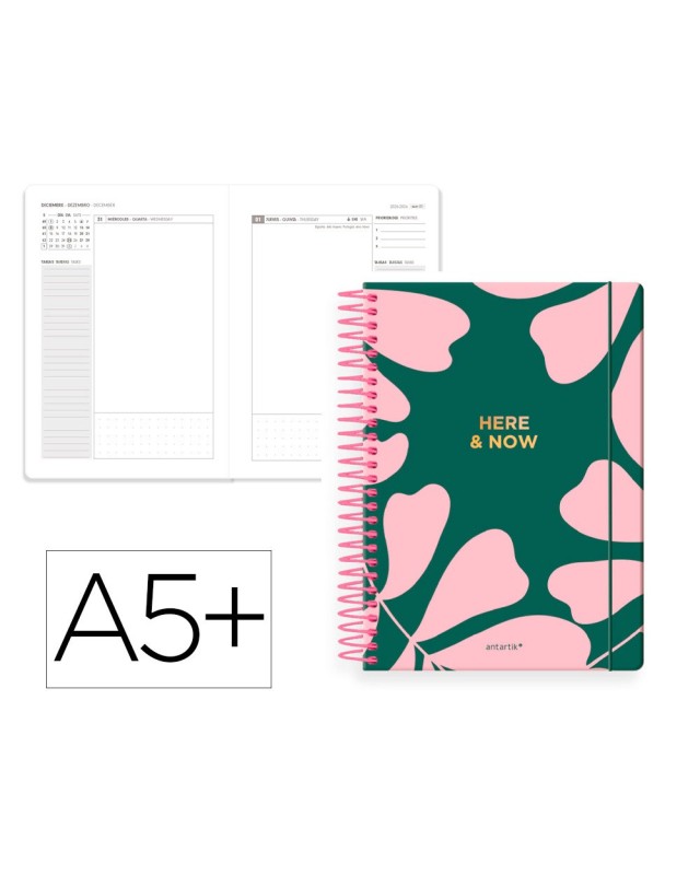 Este 2026 cambia el chip con las nuevas agendas de oficina de Antartik. Las agendas Antartik son mucho más que simples planificadores: son un manifiesto de que tu personalidad y estilo, diseñadas para almas jóvenes y creativas. Dejate envolver por la energía Antartik y descubre sus distintas COLECCION es y sus combinaciones de colores. Vive el presente y organiza tu año con la COLECCION Here and Now de Antartik. Disponible en formato DIA PAGINA, en un A5+ para que tengas espacio suficiente para detallar tus tareas. Su encuadernación en espiral, a juego con el diseño, la hace funcional además de estética.¡Descubre toda la gama de agendas Antartik y escoge la que hable por ti!El interior incluye: Calenario bianual, Planning anual, Resumen del año, Festivos en España y Portuga