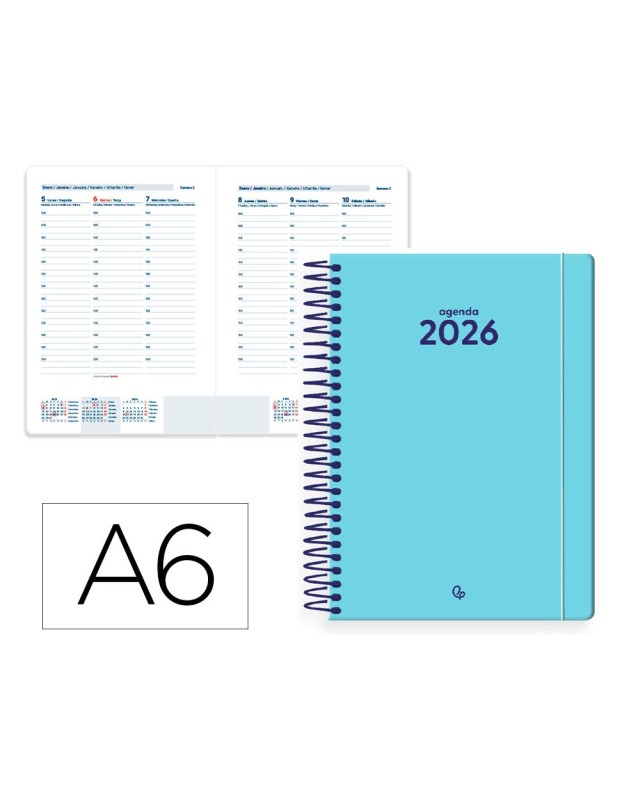Agenda espiral liderpapel classic a6 2026 semana vista azul claro papel 70 gr fsc
