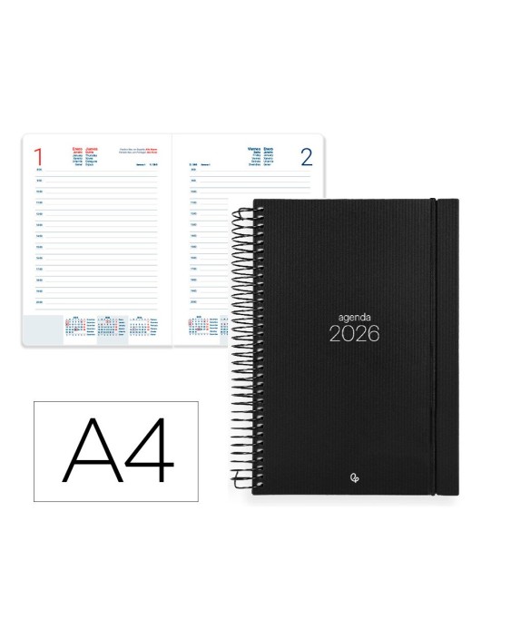 La COLECCION Olbia, de las agendas de oficina 2026 Liderpapel, nos presenta una cara más formal y seria. Descubre sus tres tonos oscuros (negro, rojo y azul) y dos distintos tamaños (A4 y A5). Perfecta para quienes valoran la organización y la eficiencia. La encuadernación en espiral y la resistente tapa de polipropileno garantizan durabilidad y funcionalidad en todo momento.El interior incluye: Calendario trienio, Planning Anual, Santoral, Feriados de España y Portugal, Distancias kilométricas entre ciudades europeas, Mapas de usos horarios, Contactos. Sabado y Domingo en diferente página. CARACTERISTICAS: AGENDA ESPIRAL LIDERPAPEL AÑO 2026, DIA PAGINA, A4, POLIPROPILENO, FLEXIBLE, PAPEL 60G FSC, COLECCION OLBIA