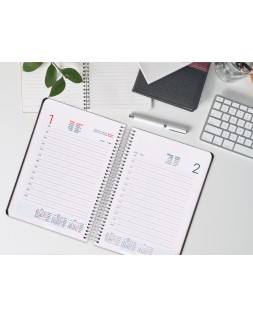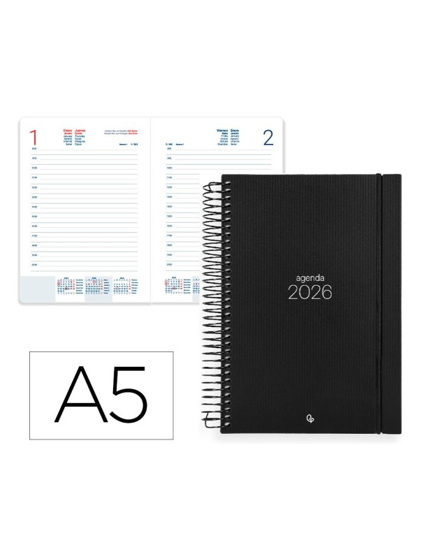 La COLECCION Olbia, de las agendas de oficina 2026 Liderpapel, nos presenta una cara más formal y seria. Descubre sus tres tonos oscuros (negro, rojo y azul) y dos distintos tamaños (A4 y A5). Perfecta para quienes valoran la organización y la eficiencia. La encuadernación en espiral y la resistente tapa de polipropileno garantizan durabilidad y funcionalidad en todo momento.El interior incluye: Calendario trienio, Planning Anual, Santoral, Feriados de España y Portugal, Distancias kilométricas entre ciudades europeas, Mapas de usos horarios, Contactos. Sabado y Domingo en diferente página. CARACTERISTICAS: AGENDA ESPIRAL LIDERPAPEL AÑO 2026, DIA PAGINA, A5, POLIPROPILENO, FLEXIBLE, PAPEL 60G FSC, COLECCION OLBIA