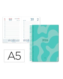Agenda espiral liderpapel syros 150x210 mm 2026 dia pagina turquesa papel 60 gr fsc