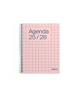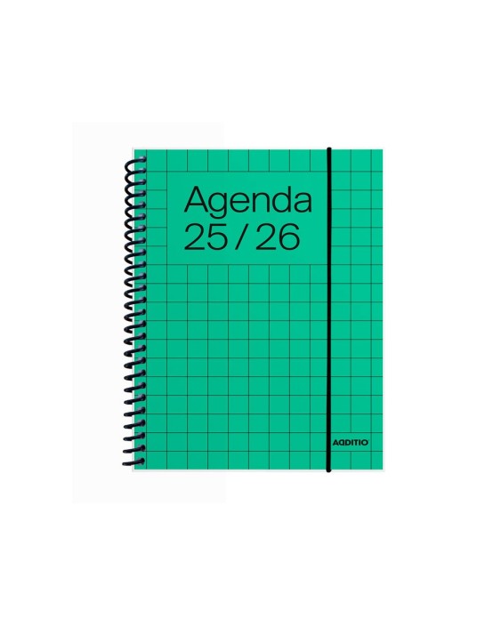 Para mayores de 16 años. 144 páginas tamaño 12,5 x 17 cm, espiral de plástico y goma elástica. Contiene: planificación del curso, agenda SEMANA VISTA de septiembre a julio, hojas cuadriculadas a color (27 páginas). Incluye adhesivos para una mejor organización.