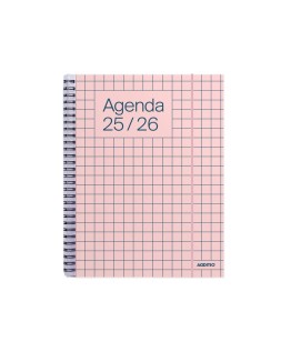Para mayores de 16 años. 176 páginas tamaño 16,5 x 21,5 cm, con uñero microperforado, espiral continua de plástico y goma elástica. Contiene: planificación del curso, agenda SEMANA VISTA de septiembre a julio, hojas cuadriculadas (59 páginas) con 5 pestañas a color. Incluye adhesivos para una mejor organización.