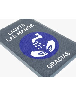 Alfombra para suelo de paso novus lavate las manos gracias fondo gris 90x60 cm