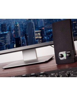 El conjunto de altavoces SoundBand 150 está dotado de una potencia de 2+2 (4W RMS, 200W PMPO) y es perfecto para quien busca un sistema Multimedia de alto rendimiento. Con un amplificador para obtener un sonido más potente, el sistema de altavoces contiene una protección magnética que evita la distorsión de los colores si se coloca cerca del monitor.