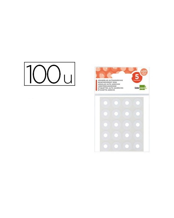 Arandela autoadhesiva liderpapel blanca blister de 100 unidades
