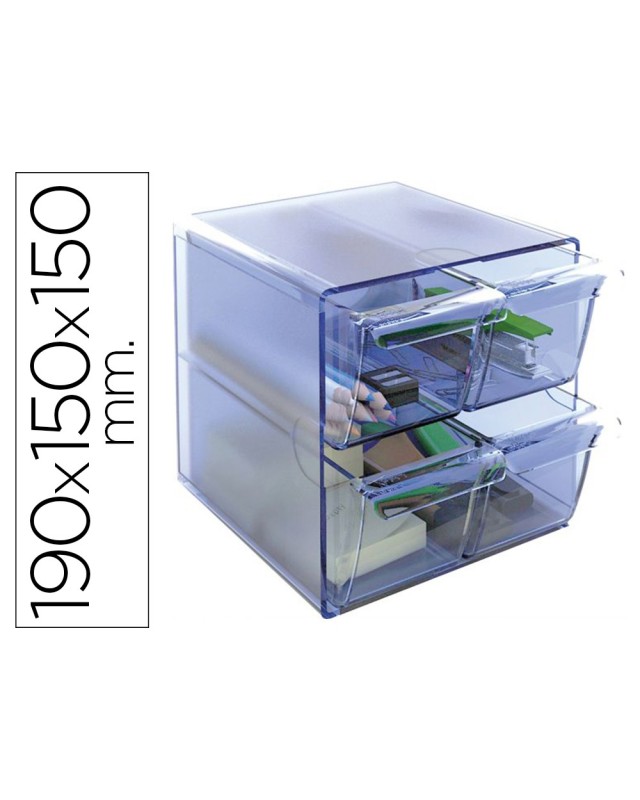 Archicubo archivo 2000 4 cajones organizador modular plastico azul transparente 190x150x150 mm