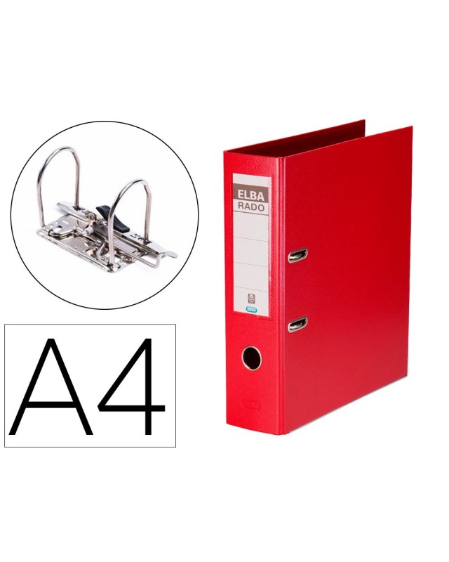 Archivador de palanca elba carton forrado din a4 rojo lomo de 80 mm rado plast