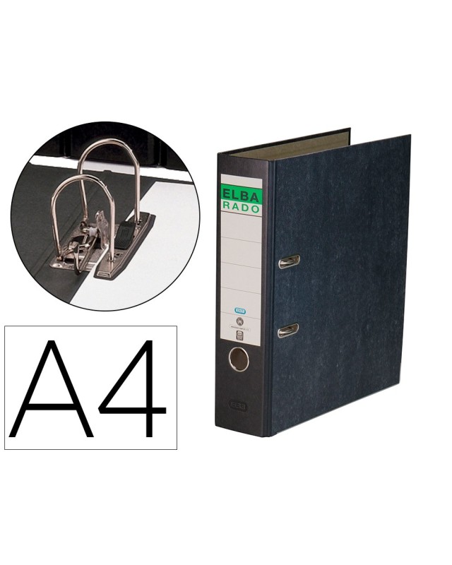 Archivador de palanca elba carton forrado jaspeado con rado din a4 lomo de 80 mm negro