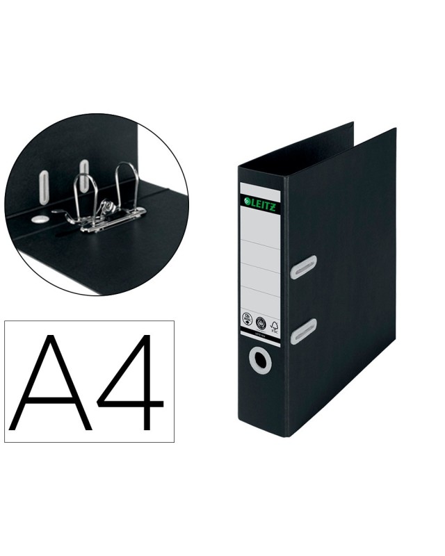 Archivador de palanca leitz recycle din a4 carton reciclado y reciclable 100% 180 lomo 80 mm negro
