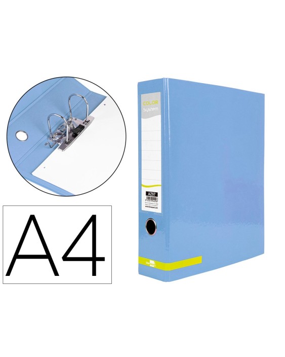 Archivador de palanca liderpapel a4 color system forrado sin rado lomo 80 mm celeste compresor metalico