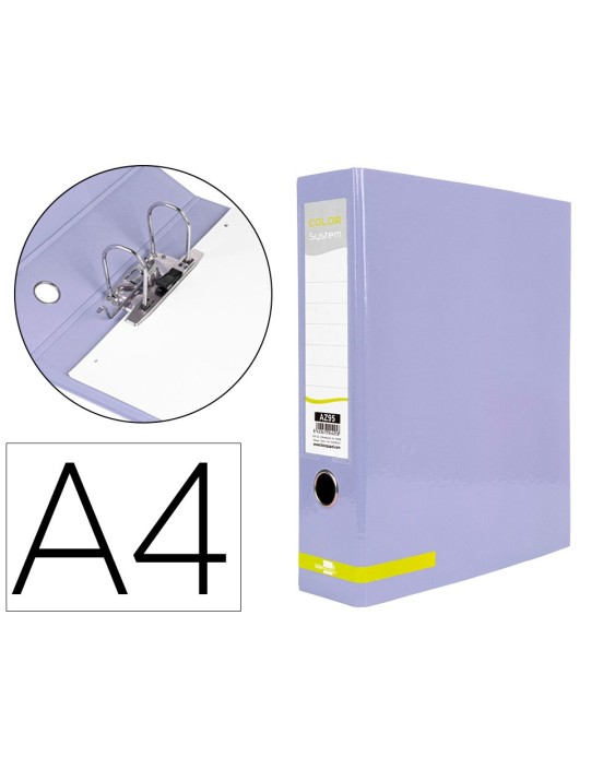 Archivador de palanca liderpapel a4 color system forrado sin rado lomo 80 mm lavanda compresor metalico