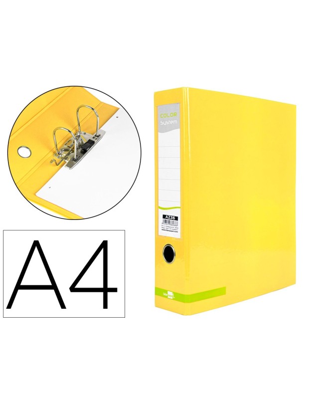 Archivador de palanca liderpapel a4 color system forrado sin rado lomo 80mm amarillo compresor metalico
