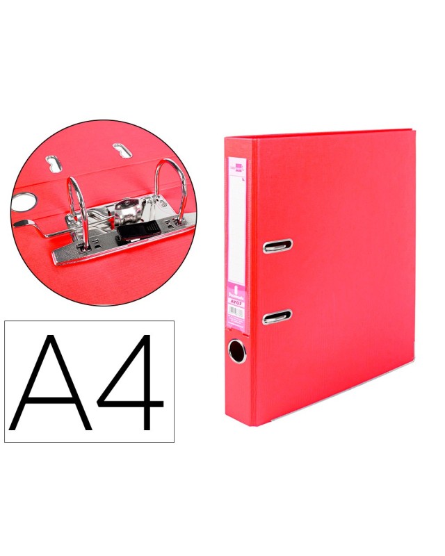 Archivador de palanca liderpapel a4 documenta forrado pvc con rado lomo 52mm rojo compresor metalico