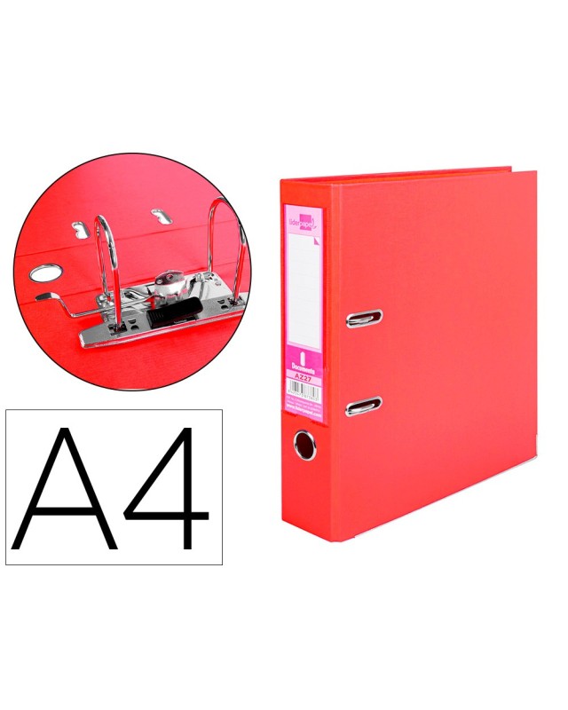 Archivador de palanca liderpapel a4 documenta forrado pvc con rado lomo 75mm rojo compresor metalico