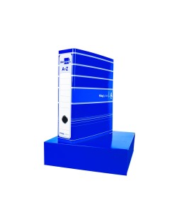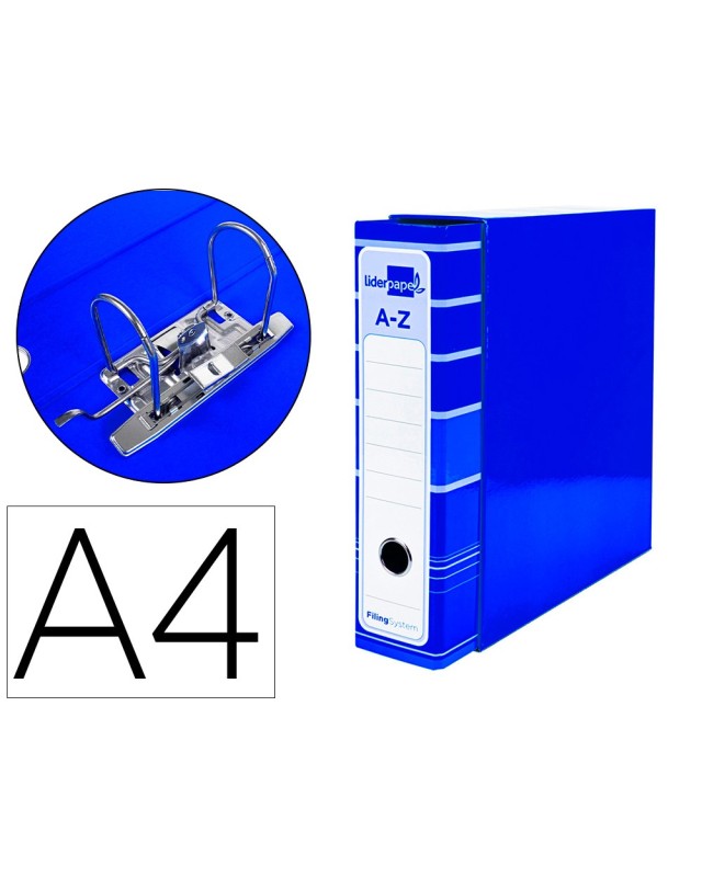 Archivador de palanca liderpapel a4 filing system forrado sin rado lomo 80mm azul con caja y compresor metalico