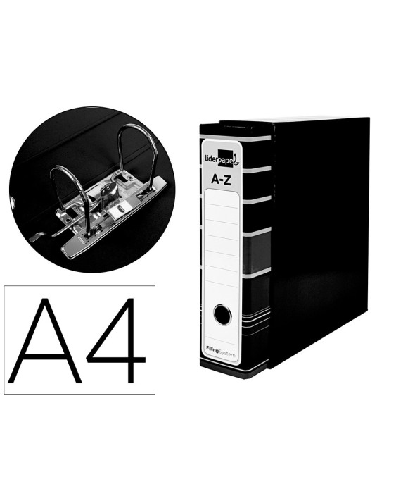 Archivador de palanca liderpapel a4 filing system forrado sin rado lomo 80mm negro con caja y compresor metalico
