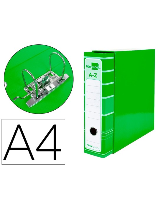 Archivador de palanca liderpapel a4 filing system forrado sin rado lomo 80mm verde con caja y compresor metalico