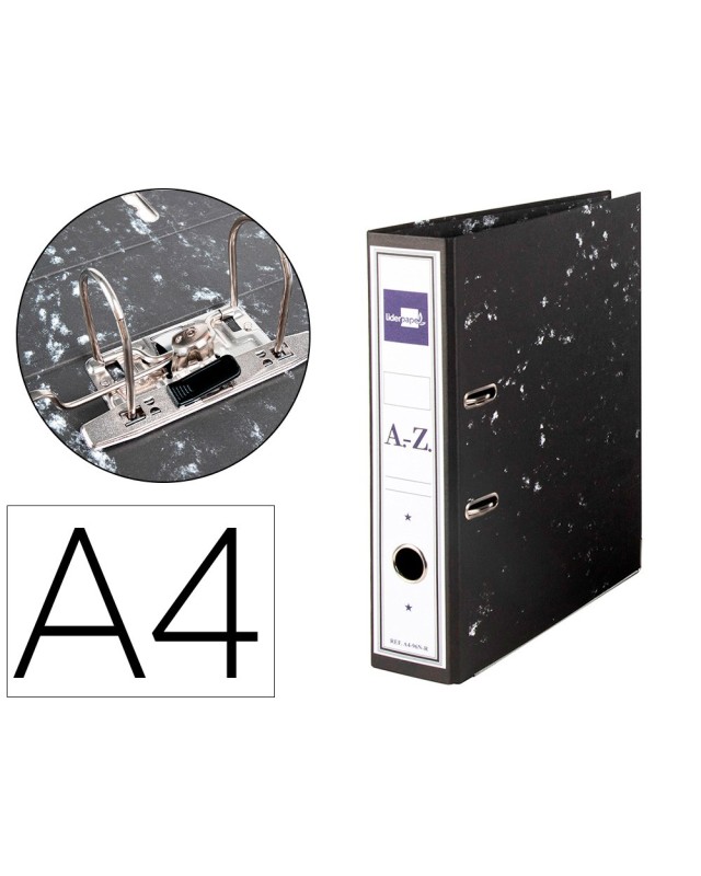 Archivador de palanca liderpapel carton forrado din a4 jaspeado negro sin caja-con rado mecanismo 75mm