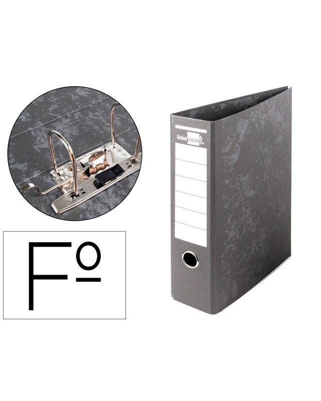 Archivador de palanca liderpapel folio carton forrado sin rado lomo 80mm negro compresor metalico