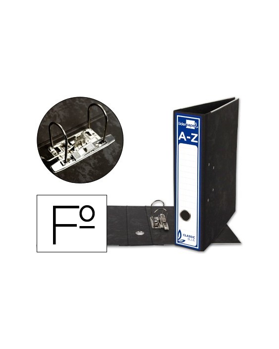Archivador de palanca liderpapel folio classic blue carton entrecolado sin rado lomo 80mm negro compresor metal