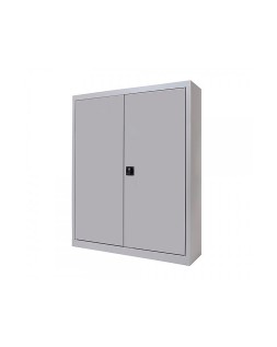 Armarios metálicos con niveladores realizados en plancha de acero. Puertas metálicas de acero de 0.7 mm batientes con refuerzo interior y cerradura de seguridad con tirador incorporado. Baldas metálicas regulables en altura (admiten carpetas colgantes A4). Baldas incluidas.