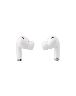 Modelo premium con pantalla LED que muestra el nivel de batería del estuche (450 mAh). Bluetooth 5.4, cuatro micrófonos y cancelación de ruido híbrida ANC -28 dB + ENC para llamadas nítidas. Batería de 35 mAh por auricular: 5 h de reproducción (25 h adicionales en estuche, ANC apagado). Carga rápida USB-C.