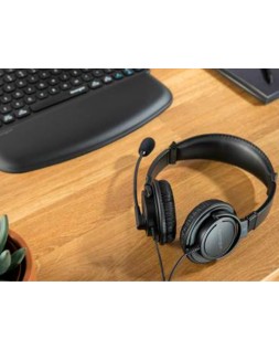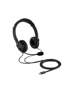 Auriculares con micrófono de alta calidad perfectos para el aprendizaje a distancia, trabajar desde casa, entornos educativos y de oficina. Compatible con todos los dispositivos USB-C que ejecuten Windows, macOS, iOS, Android y Chrome OS. Diadema ajustable y acolchada, micrófono flexible con cancelación de ruido y óptima calidad de voz que se puede girar 270 grados y las almohadillas de espuma envueltas en cuero sintético para ofrecer horas de uso confortables. Nivel de audio seguro con un máximo en 94 db para proteger los oídos de la pérdida auditiva asociada a volúmenes muy altos.