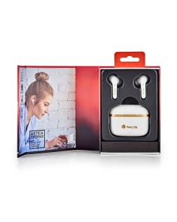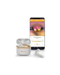 Auriculares con tecnología de reducción de ruidos ANC (Active Noise Cancelling). Dispone de 3 modos de escucha: modo normal, modo ANC en el que se reduce el ruido exterior hasta en 25 dBs y modo transparente, en el que se enfatiza el sonido exterior para saber lo que está ocurriendo a tu alrededor. Dispone también de un micrófono de alta calidad, que permite una comunicación más nítida tanto en videoconferencias como en llamadas telefónicas. Incluye controles táctiles con diferentes funciones. Cada auricular incorpora una batería de 40 mAh con una autonomía de hasta 5 horas con una sola carga, y gracias a su base de 350 mAh, podemos cargar cada auricular hasta en 3 ocasiones, disponiendo así de unas 20 horas de uso sin necesidad de cargar la base. Conexión de carga USB tipo