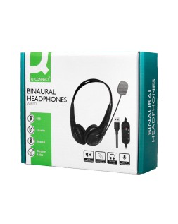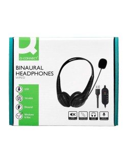 Auricular biaural con micrófono ajustable de alta sensibilidad y sonido envolvente. Controlador de volumen, micrófono y audio. Indicado para una comunicación manos libres, ideal para ordenador Y portátil. . Conexión USB. Almohadillas acolchadas para un cómodo uso y diadema ajustable. Color negro. CABLE DE 2M DE LONGITUD.