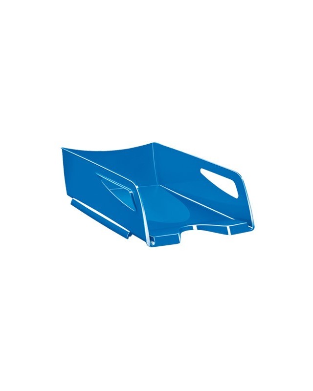 Fabricada en poliestireno reciclable. De gran capacidad, ideal para grandes documentos y listados. Elegante, práctica y muy robusta. Con 2 asas laterales para mover la bandeja con mayor facilidad. Gran abertura en la parte delantera. Apilable. Medidas: 270 x 115 x 386 mm.