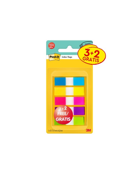 Banderitas separadoras post-it pequeña 11,9x43,2 mm dispensador 60 hojas+40 hojas gratis 5 colores surtidos